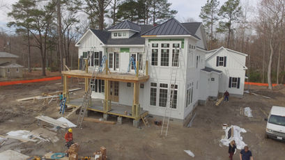 This homesite situated on a busy road in Virginia Beach has a tremendous amount of traffic going by. RBA designed the home with a modern farmhouse aesthetic to create a respite from the day's stress. Designed to accommodate a growing family, the interior allows natural light to pour into all of the spaces from the 2nd floor.